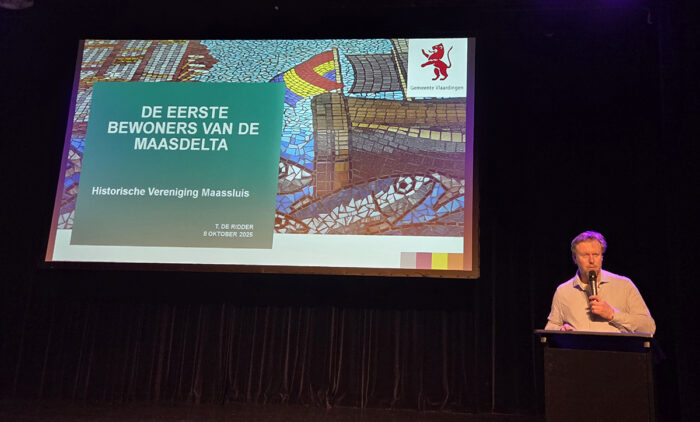 De theaterzaal van Koningshof zat woensdagavond 8 oktober vol met nieuwsgierige bezoekers. Zij kwamen luisteren naar het verhaal van archeoloog Tim de Ridder over de eerste bewoners van de Maasdelta. Met zijn presentatie wist hij het publiek tot de laatste minuut te boeien met geschiedenis en verrassende inzichten.