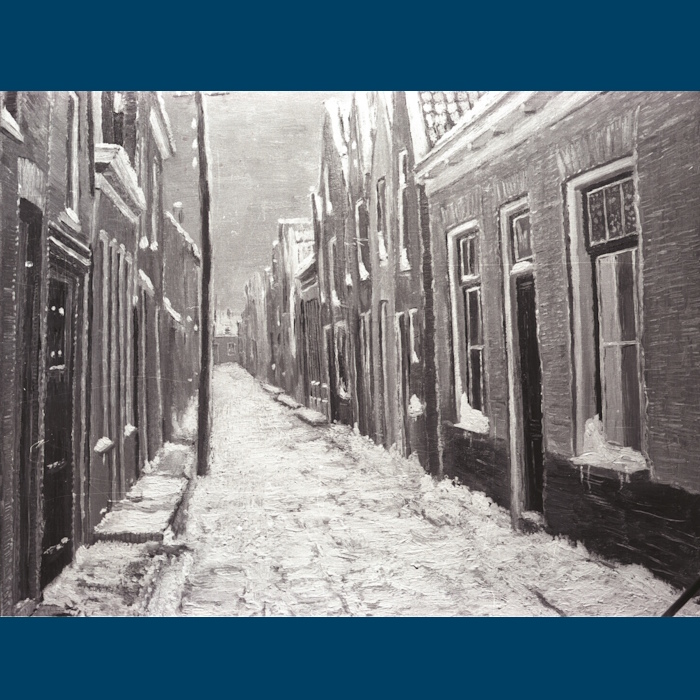 Schilderij van Henk Fortuin: Sandelijnstraat in de sneeuw